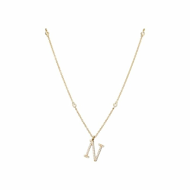 Collier Lettre N serti en or jaune et diamants