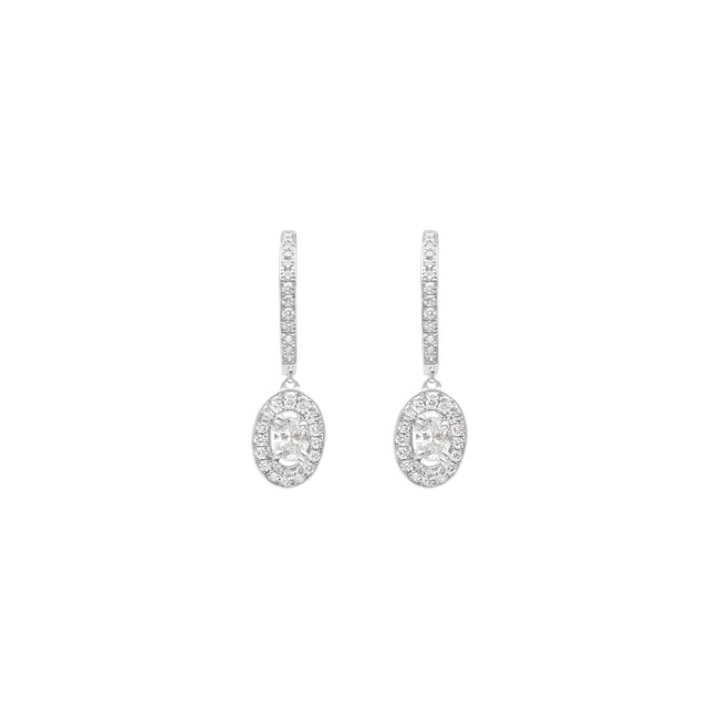 Boucles d'oreilles pendant or blanc diamants ovale entoure de diamants